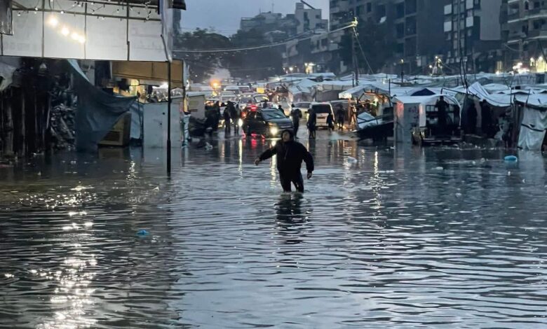 أمطار غزيرة تُغرق حيّ الرمال وسط مدينة غزة