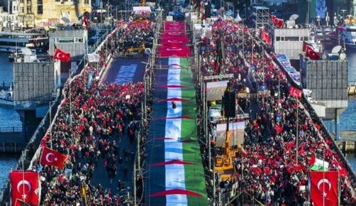 شهدت مدينة إسطنبول التركية، فجر اليوم، مسيرة تضامنية ضخمة دعمًا للقضية الفلسطينية، شارك فيها عشرات الآلاف من المواطنين، عقب تجمعهم أمام عدد من المساجد الكبرى بعد أداء صلاة الفجر.