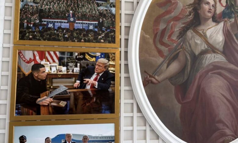 وأظهرت الصورة ترامب ورونالدو وهما يتصافحان داخل المكتب البيضاوي، بعدما قام الرئيس الأمريكي بتعليقها ضمن الصور المعروضة على جدران مكتبه، في خطوة عكست تقديره للنجم البرتغالي، وأعادت إلى الأذهان تفاصيل اللقاء الذي جمعهما في وقت سابق.